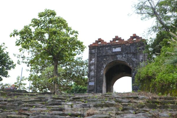 Sau khi vượt hàng nghìn bậc đá uốn lượn theo sườn núi, du khách có thể chạm tới “cổng trời”. Khi đứng ở đây, các bạn tha hồ ngắm trời đất bao la và biển nước mênh mông cũng như núi non trùng điệp kéo dài tít tắp. Phía xa xa là nhà cửa làng mạc trù phú, từng ô ruộng như bàn cờ vào vụ chín rộ màu vàng và thấy được cả những đoạn đường lượn quanh ôm dưới chân Hoành Sơn.