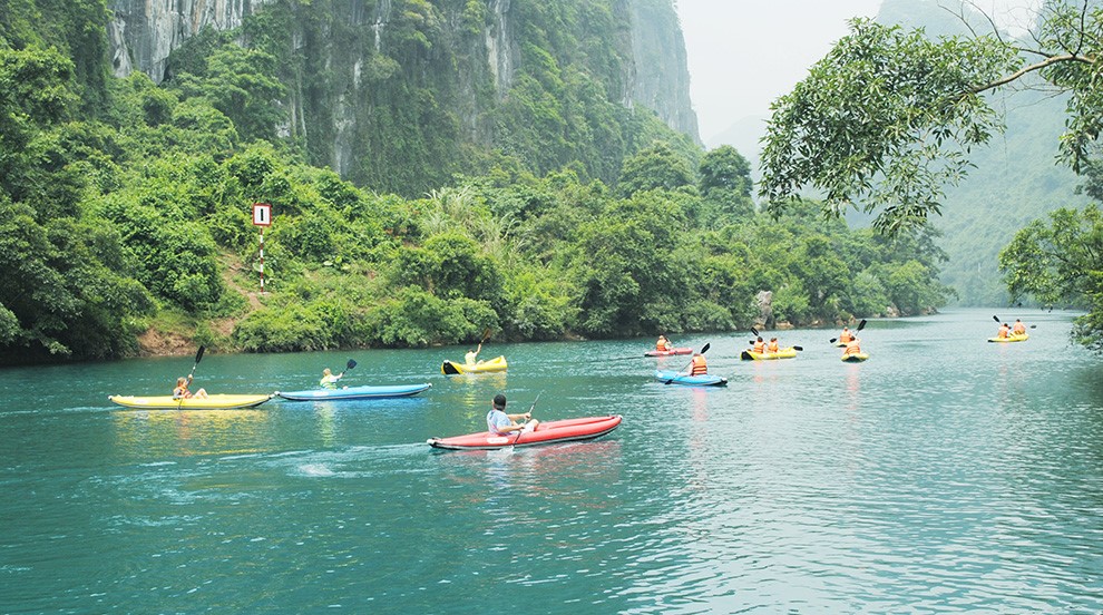 Tham gia chèo thuyền Kayak trên Sông Chày: du khách sẽ cảm nhận được dòng chảy êm đềm, lãng mạn với màu nước trong xanh như ngọc bích với những dãy núi đá vôi kỳ vỹ. Hai bên bờ là những cánh đồng ngô trải dài tạo nên một bức tranh sơn thủy hữu tình, du khách sẽ tận hưởng những phút giây thư giãn thoải mái khi đắm mình vào thế giới tự nhiên.