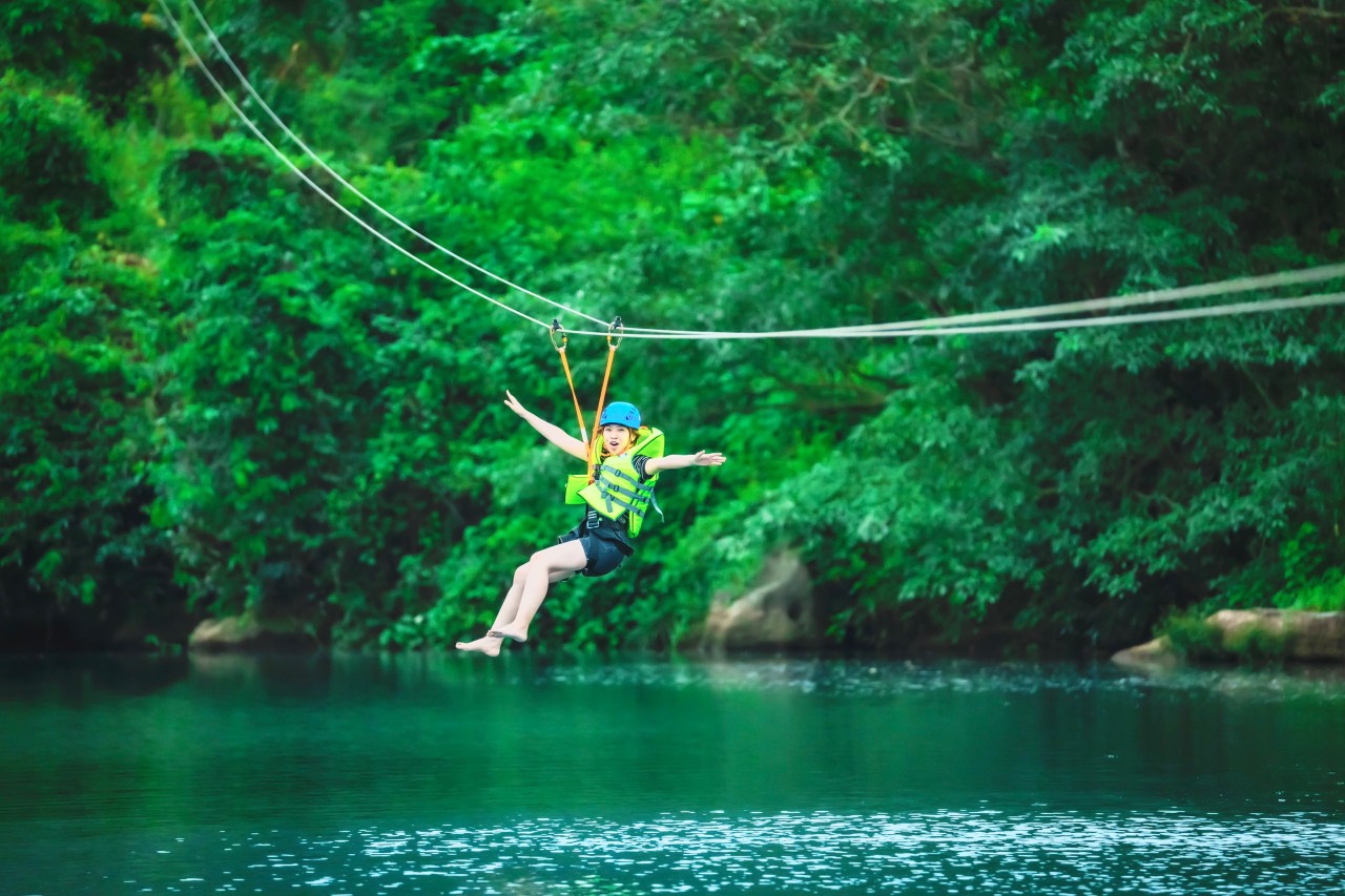 - Zipline tỏm hay được gọi là trò chơi vượt qua chính mình, với 3 làn zipline thì quý du khách đừng bỏ lỡ trò chơi này cùng đồng đội nhé!