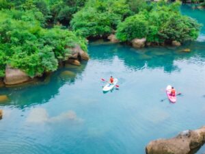 - Khám phá vịnh Sỏi Vàng: Chèo Kayak xuôi dòng sông Chày cùng chiêm ngưỡng Vịnh Ha Long thu nhỏ giữa lòng di sản, và là điểm đẹp nhất để checkin giữa dòng sông thơ mộng